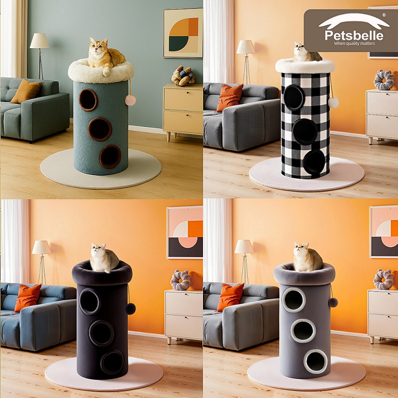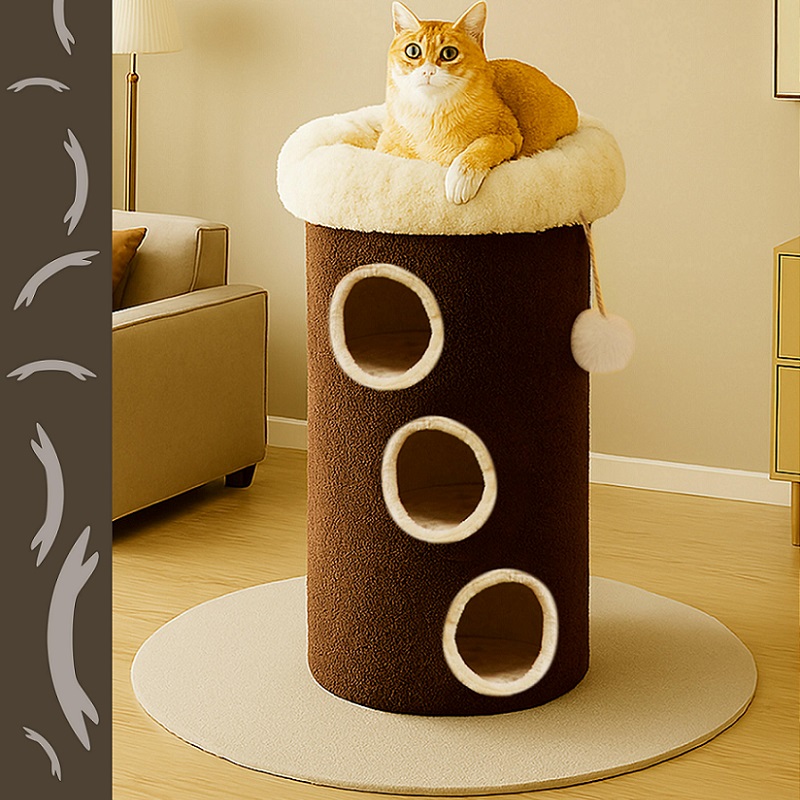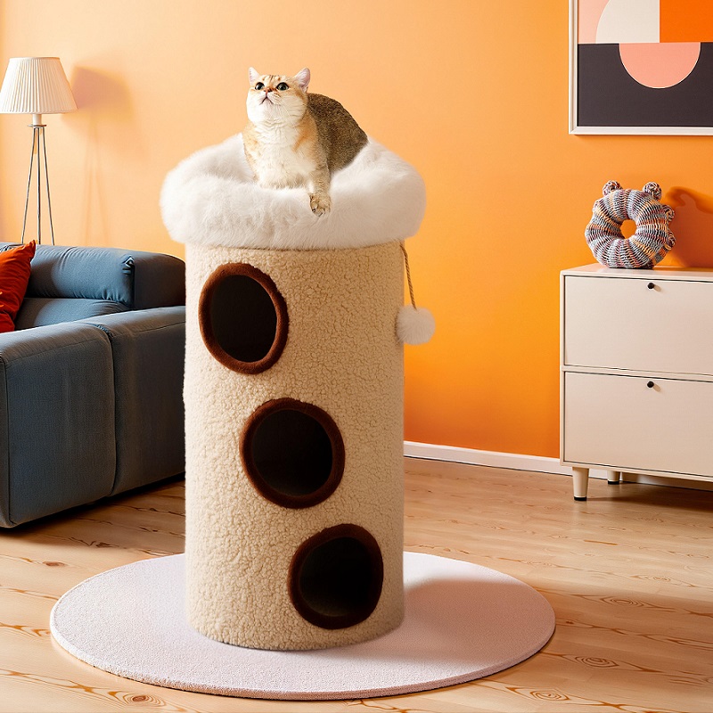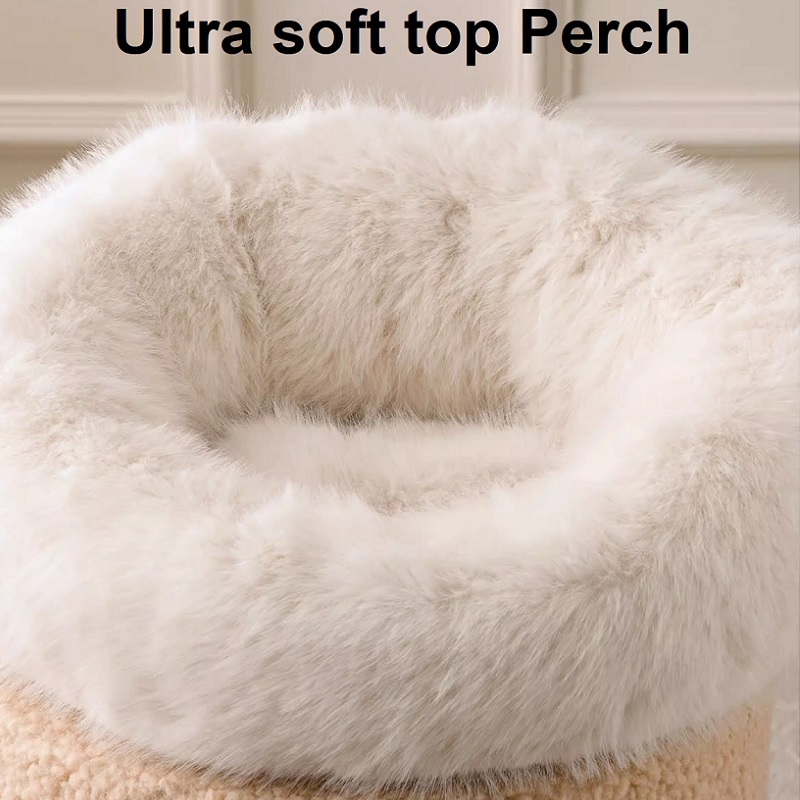 Built-in top perch with plush polar fleece. Stable structure keeps it firm when your cat jumps or shifts, offering a safe high spot for lounging and observing.